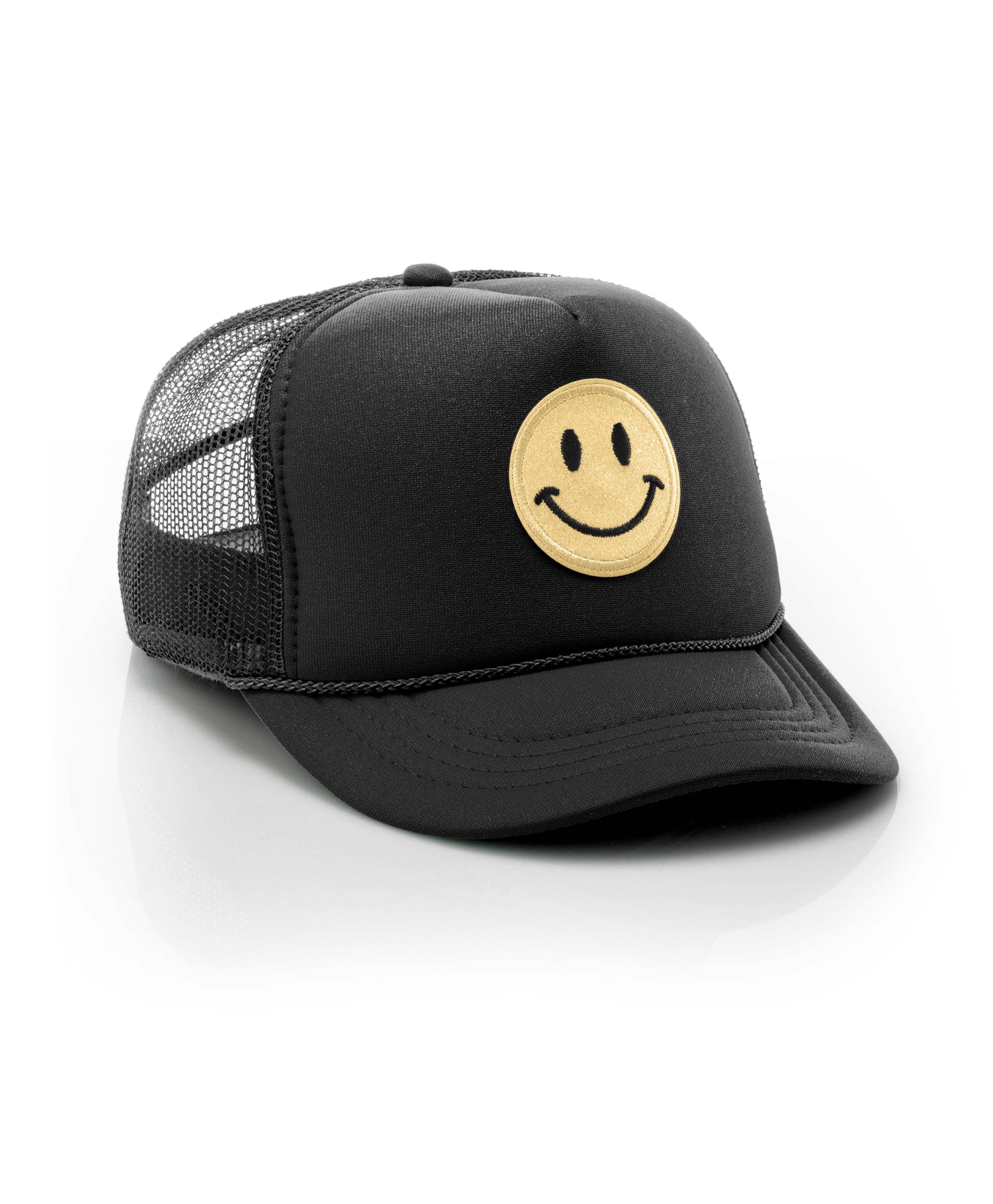 Kids Glitter Smiley Patch Foam Trucker Kids will have fun in the sun in this cute trucker. 100% Poly Foam Front, 100% Nylon Back