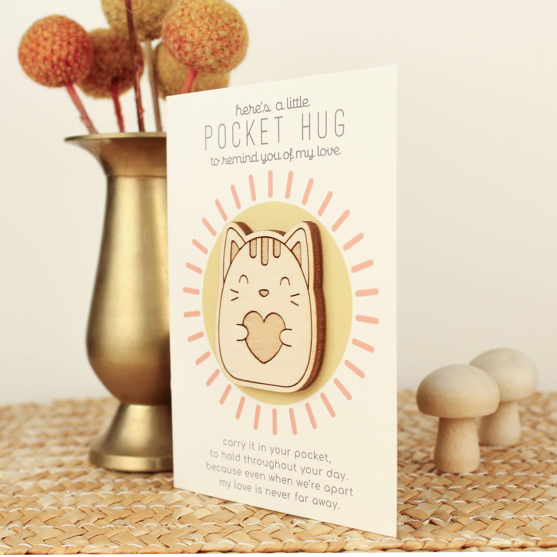 Wooden Pocket Hug, Cat. Thinking of You Gift
